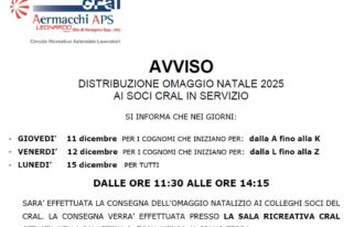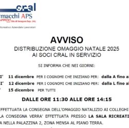 AVVISO DISTRIBUZIONE STRENNE NATALIZIE RIVOLTO SOLO ED ESCLUSIVAMENTE AI SOCI IN SERVIZIO GIOVEDI’ 11 dicembre PER I COGNOMI CHE INIZIANO …