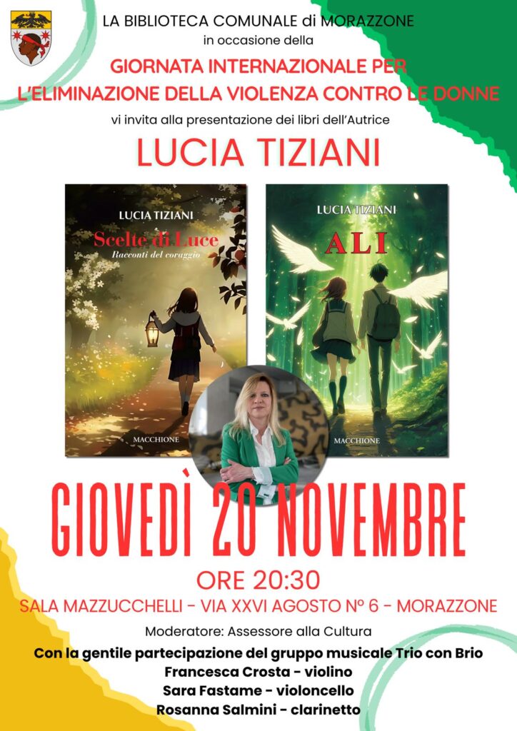 Lucia Tiziani, scrittrice e ns. socia cral, presenterà i Suoi due libri Scelte di Luce e Ali, che si prestano per l’argomento.